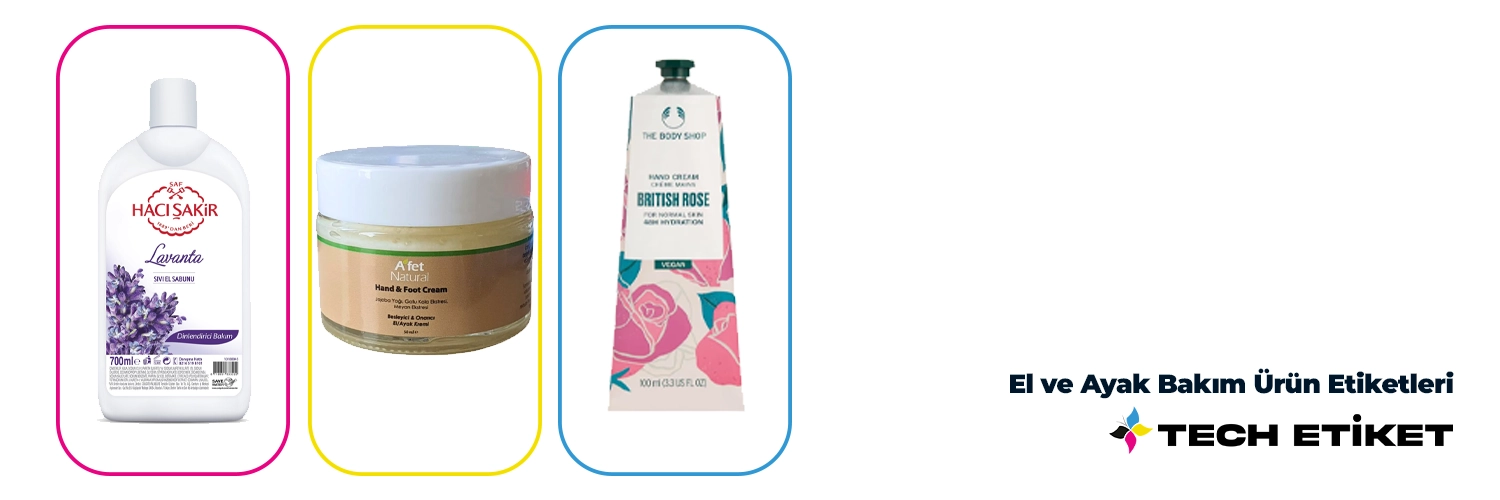 El ve ayak bakım ürünleri genellikle el kremi, ayak kremi, manikür ve pedikür ürünleri gibi çeşitli ürünleri içerir. Bu ürünlerin etiketleri genellikle aşağıdaki bilgileri içerir: